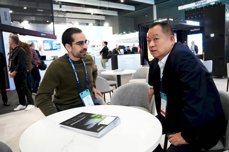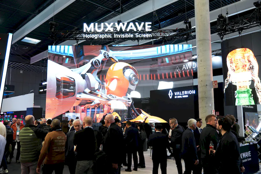 位于展馆南入口玻璃幕墙上的193㎡ 美矽微全息隐形屏,作为ISE公共展示界面的视觉载体,以极高的感官通透度,为观众呈现震撼的“第一眼”体验,成为现场极具标志性的视觉存在。