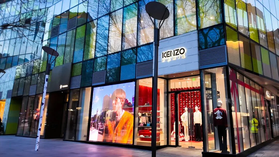 KENZO 的门店设计一贯强调节奏感、律动性与鲜明的色彩表达,因此在本次橱窗焕新中,如何保留临街玻璃橱窗的通透感与内部陈列的景深层次的同时,引入高画质的动态视觉,成为设计团队关注的核心。