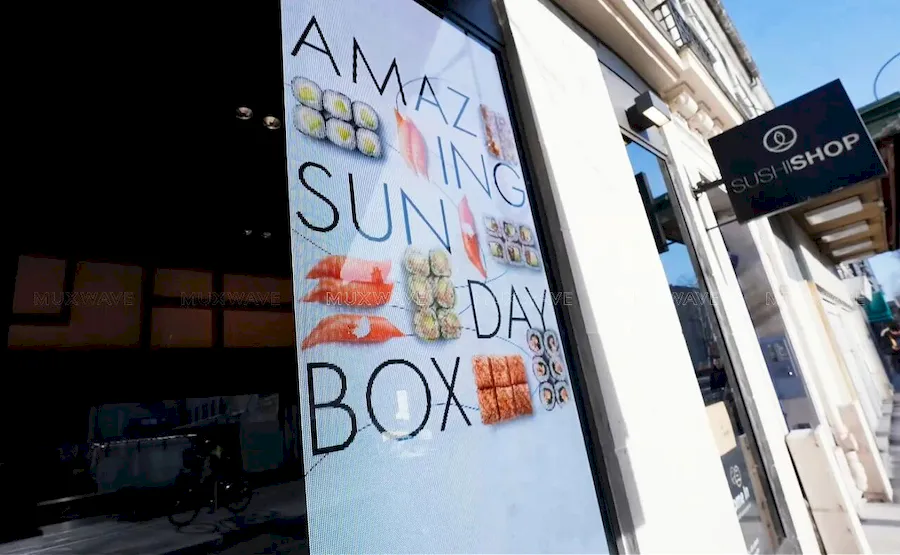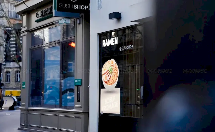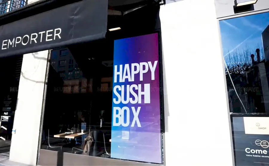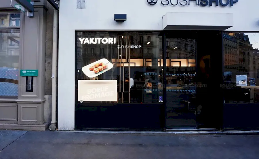 巴黎Sushi Shop连锁门店橱窗安装美矽微全息隐形屏用于创意传播,同时在不遮挡店内视野的情况下获得关注。美矽微正以全息隐形显示技术,为全球连锁餐饮品牌提供透明显示解决方案。